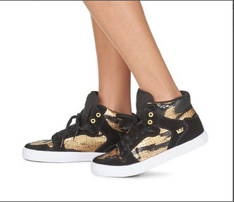 Модные и удобные высокие кеды Supra.( очень крутая и дорогая фирма сама -по-себе.) размер 3uk. us 5.5, идут на наш 35 . верх замшевая кожа черного цвета с золотым напылением в виде принта крокодиловой кожи.