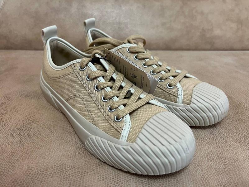 Очень стильные кеды из плотного органического хлопка в бежевом цвете,рифлёный прорезиненный носок,плотный завышенный задник,эластичная подошва,очень удобные,размер в наличии 36.