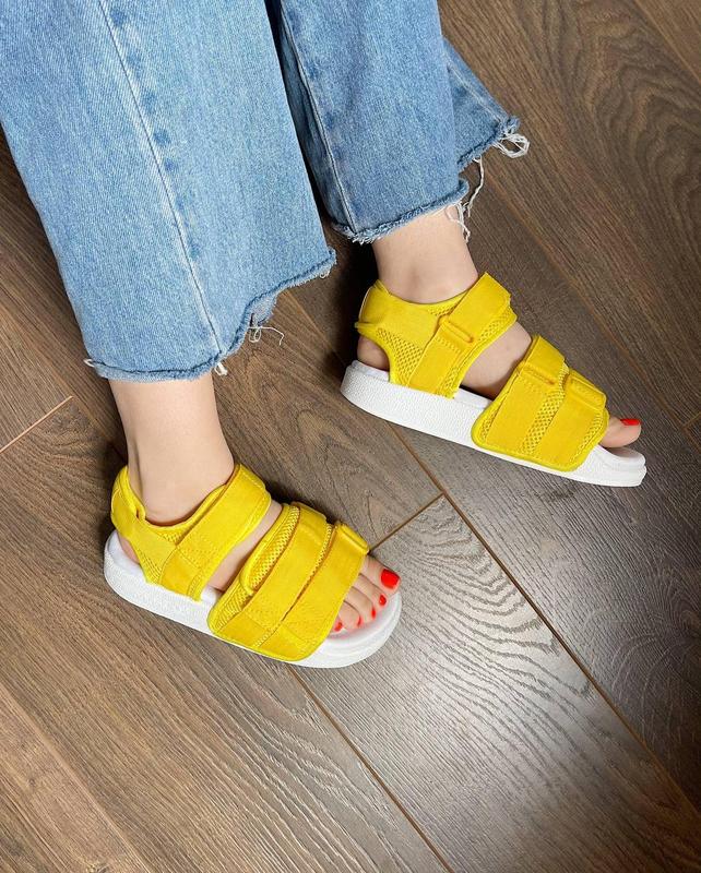 Босоніжки Adidas Yellow White. Матеріал верху текстиль. Матеріал підошви піна. Колір моделі білий, жовтий. Ці босоніжки підійдуть під сезон літні. Ці босоніжки будуть служити вам довго і радувати Вас.