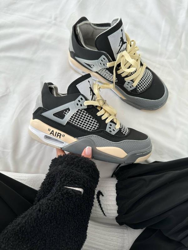 Отличные кроссовки nike air jordan retro 4 x off-white black beige premium чёрные с бежевы...