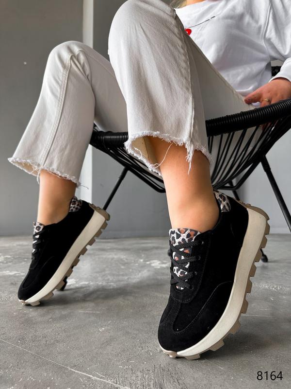 Код: 8164 Матеріал: натуральна замша Колір: чорний + леопард підошва: 4 см, спереду: 2,5 см Всередині текстиль Виробництво Україна