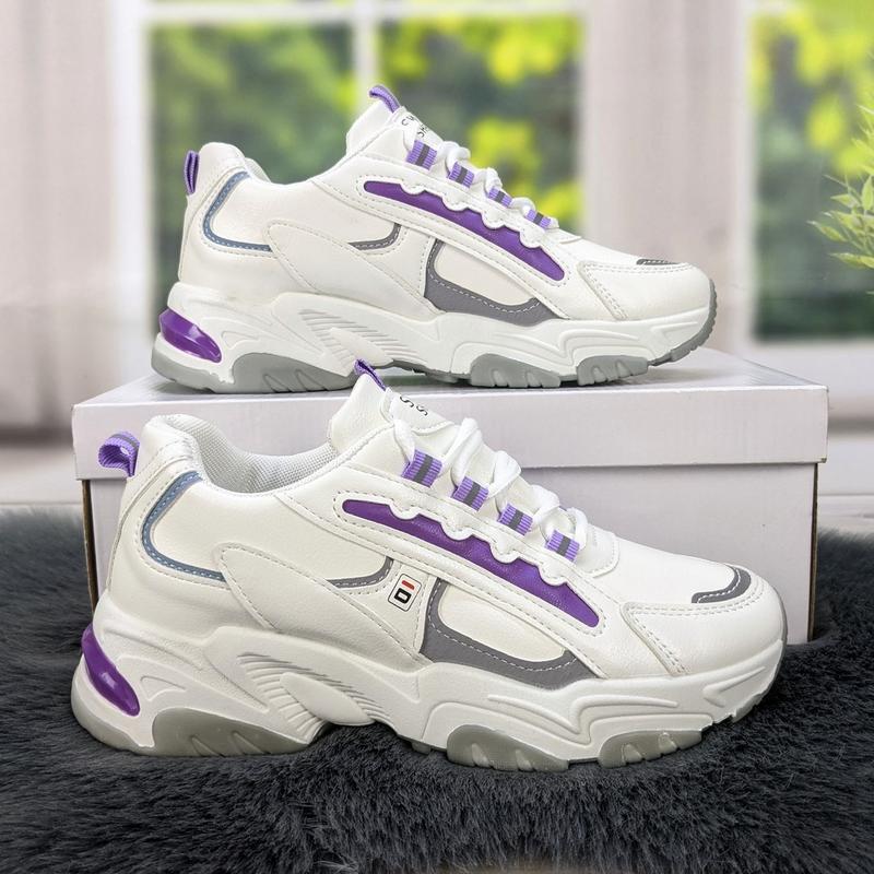 Кроссовки женские белые с фиолетовым на объемной подошве swin 4425