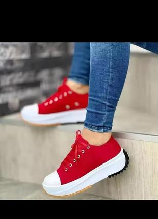 Кросовки абсолютно новые, цвет насыщенный яркий красный. Подошва небольшая платформа. Заказывали и не угадали с размером, на стопу 22.5-23см !!!! Указан размер 37 но на стопу 23.5см впритык!