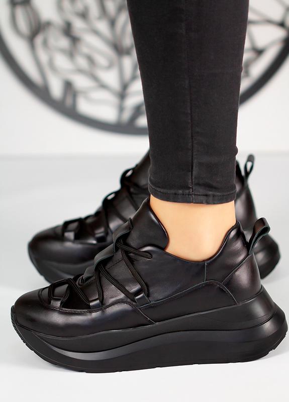 Кроссовки женские кожаные черные volna 7966-28