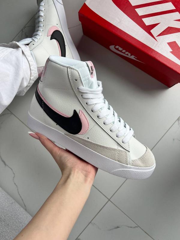 Поздравляем! Коллекция разнообразной мужской и женской обуви. Напишите нам что Вас интересует, в наличии большой выбор обуви. НАПИШИТЕ НАМ ПРЕДУПРЕМЛЕНИЯ!!! Что нужно для приобретения кроссовок. - Пливыше имя - Город, и отделение Вашей НовойПочты для отправки пищалки. - Номер мобильного телефона получателя. Оплата производится при получении посылки в отделении Вашей почты наложенным платежом. Кроссовки Nike Blazer High 77 SE White Black Arctic Punch Арт 0265 ▫️Материал - кожа, замша ▫️Производитель - Вьетнам 🇻🇳 ▫️Размеры 36-41 ▫️Комплектация - брендовая коробка, бумага
