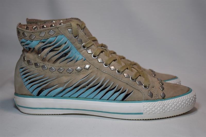 Летние высокие женские кожаные кроссовки кеды Ash Limited. Италия. В идеальном состоянии. Оригинал! Обувь от итальянского бренда, изделия которого всегда отличаются безупречным стилем и качеством. Материал верха - мягкая и прочная натуральная кожа / нубук премиум класса с перфорацией в оригинальном дизайне. Внутренний материал - натуральная кожа. Материал стельки - натуральная кожа. Подкладка и стелька из натуральной кожи обеспечивают оптимальный тепло- и воздухообмен. Подошва: прочная, износостойкая, обладает высокой устойчивостью к истиранию. Ультрамодная модель подходит под различные стили одежды и очень удобная Длина стельки - 25 см. Высота от пола 13 см. Изготовленные в Италии. 2f69
