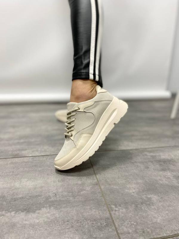 Кроссовки кеды бежевые на высокой подошве натуральная кожа замша демисезонные летние 975