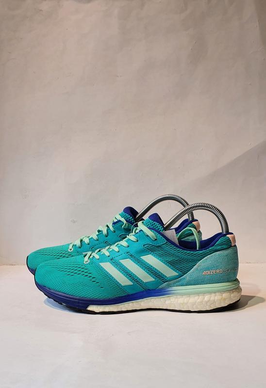 Оригинал. Размер 38 - 24см. длина стельки. Легкие беговые кроссовки для тренировок на скорость. Более плоская подошва позволяет лучше чувствовать поверхность. Ультрадышащий верх из крупной сетки со специальным кроем Microfit надежно фиксирует стопу в области свода и пятки. Упругая амортизация и гибкая подметка для плавного и энергичного бега. Плотно облегающая конструкция для соревнований: рекомендуем брать на полразмера больше Шнуровка Верх из крупной дышащей сетки Подошва из резины Continental™ для оптимального сцепления при любых погодных условиях; гибкая подметка Stretchweb Амортизирующая промежуточная подошва Boost Легкая и поддерживающая модель