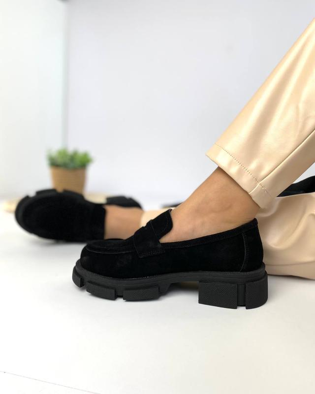 Код 515 НОВИНКА❤️ Лофери жіночі 🍃 Матеріал: натуральний замш Колір: чорний підошва: 4 см, спереду: 2 см всередині натуральна шкіра Виробник КНР На вузьку та середню ніжку Розмір 36-41 36-22,5-23см 37-23,5 см 38-24,5 см 39-24,7см 40-25,2 см 41-25,5 см