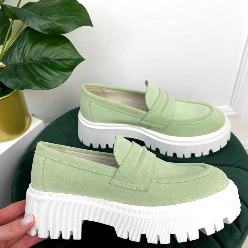 💰цена 1890грн Лоферы Nina❤️Mi Цвет: салатовый Материал: натуральная замша Сезонность: демисезонные Код товару: 33458 ▪️Высота подошвы спереди: 3,5см ▪️Высота подошвы сзади:5см ▪️Высота задника:5,5см Размер по сетке: 36-23; 37-23,5; 38-24; 39-24,5; 40-25,5см 👇👇