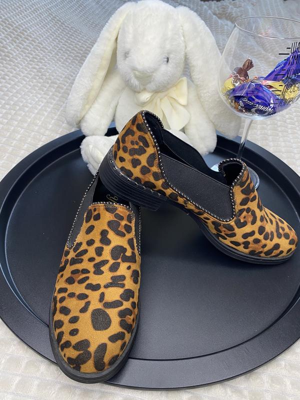 Осени женские туфли , тряпочные леопард на резинки. Размер 40 (27 см) , каблук 2.5 см.