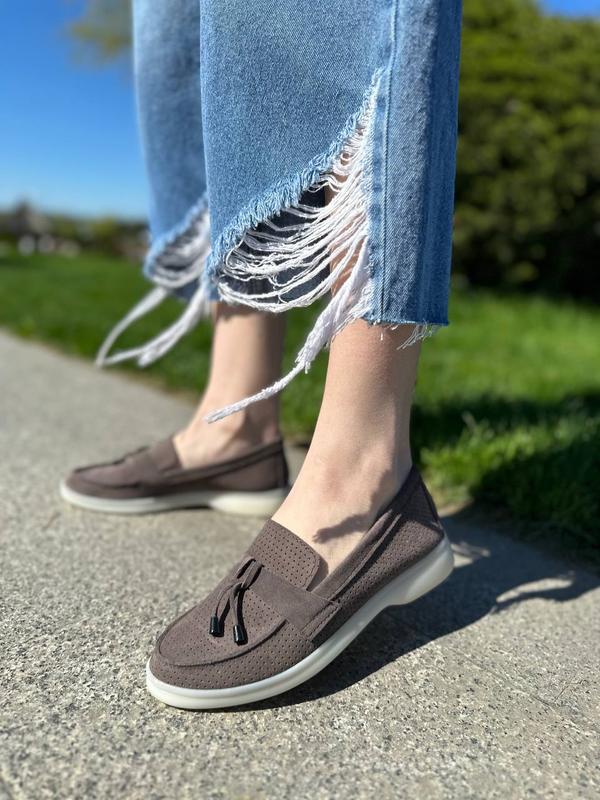 Лоферы с перфорацией Код к077 Натуральный замш Размер в размер С 36 по 41р Подошва черная/бежевая Пошиваем в любом цвете из нашей палитры 36-23,5 37-24 38-24,5 39-25,5 40-26 41-26,5