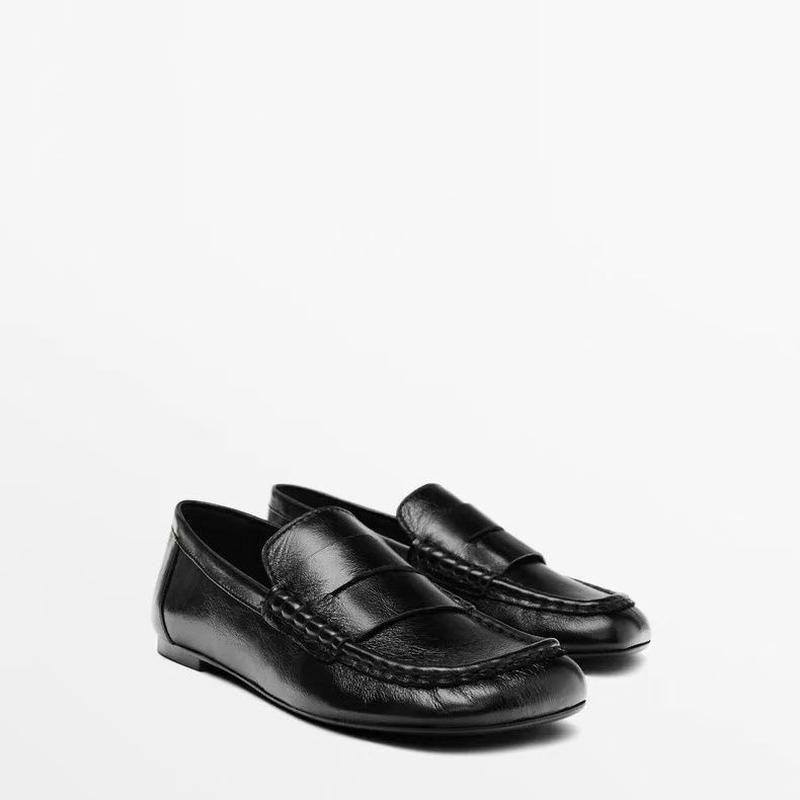 Лофери жіночі шкіряні massimo dutti loafers with penny strap - slip-ons - black
