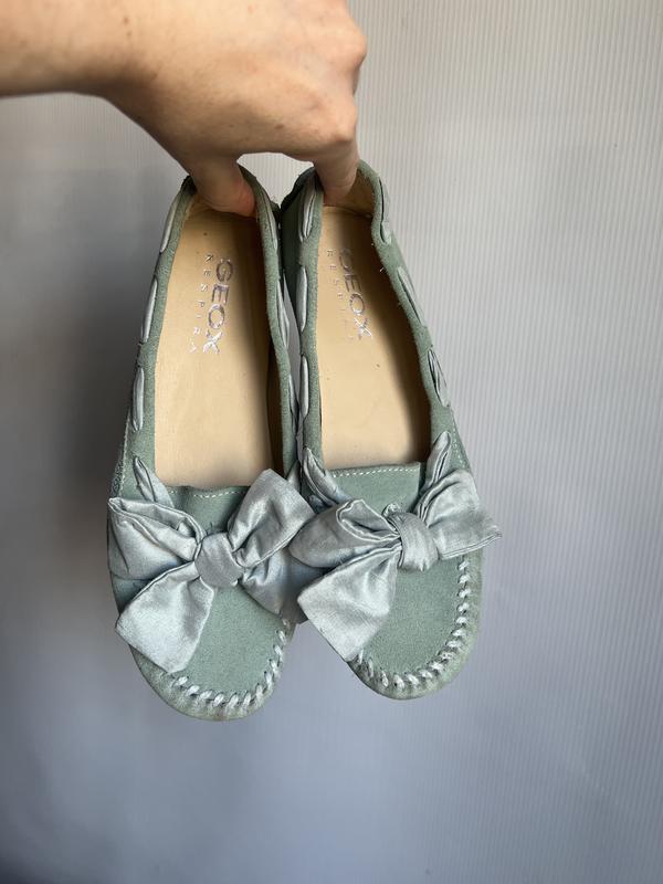 Мокасины Geox (Италия). Верх выполнен из натуральной замши, стелька и подкладка - из натуральной кожи. Декорированы лентой с бантиком. Качественная, запатентованная непромокаемая дыхательная (мембранная) подошва (технология Geox Respira). Подошва, стелька - Italian Patent (межнеодно запатентованная). Благодаря своим технологиям, обувь Geox очень легкая, дышащая, непромокаемая и комфортная. Стан - были в носке, состояние идеально, но имеют загрязнения, поэтому нуждаются в чистке. Длина стельки - 23см. Размер: 35.