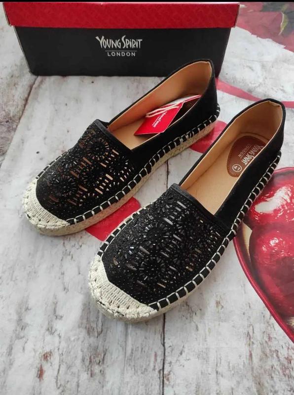 Крутые эспадрильи в черном цвете с перфорацией Удобные,легкие. Купила себе по заказу В родной упаковке. Размер 41 -26.5 см Но на меня желаемы большие. Не на очень широкую ногу
