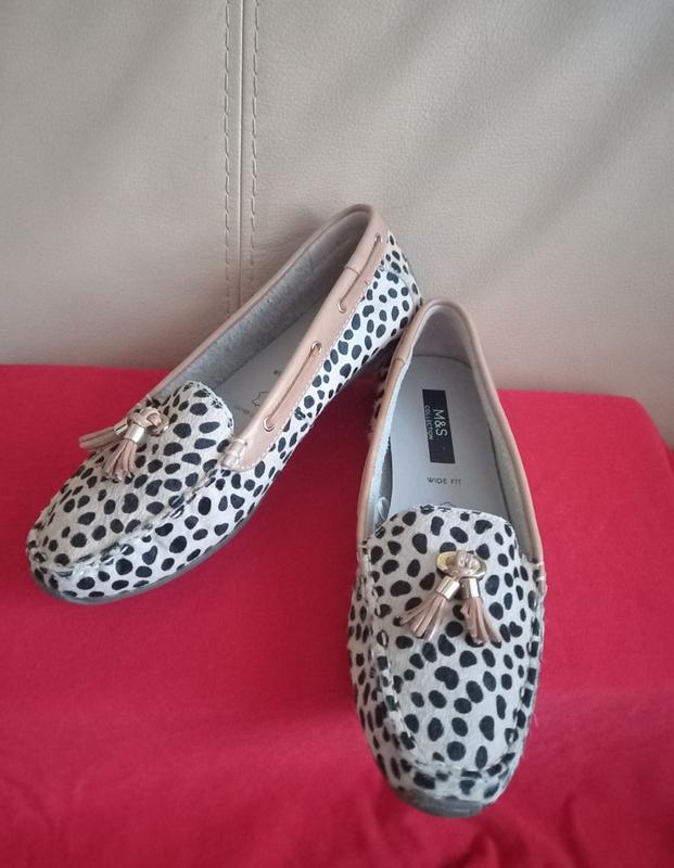Кожаные женские мокасины M&S collection р.3UK (35.5) Кожа мех Длина стопы 23см Ширина стельки 8см В идеальном состоянии