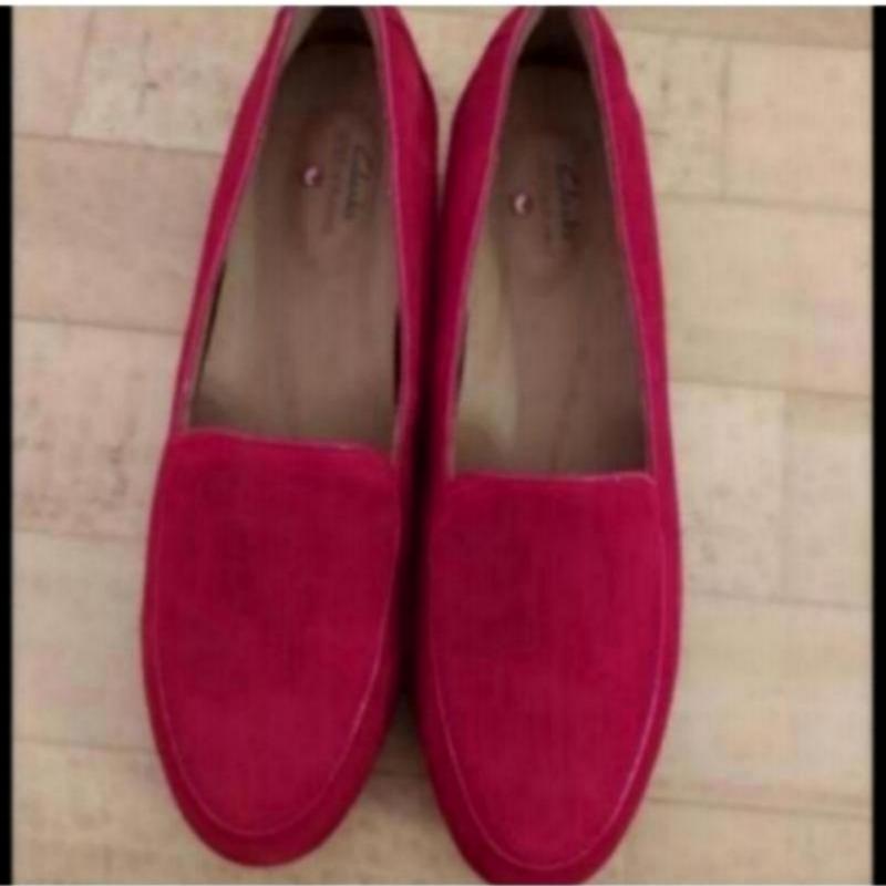 Замшевые мокасины Clarks,красивый бордово-красный цвет,внутри кожа,новые,по подошве видно,что просто мерялись, дефектов,нюансов,нет,очень мягкие,удобные,невесомые,как тапочки.39 размер,будет и на 38 размер,стелька в притык-25 см ,будет и на 24.5 см