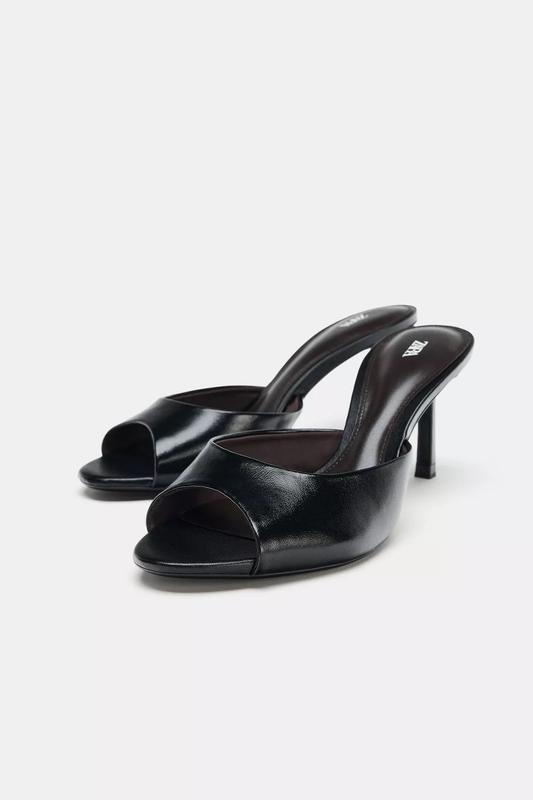 Шкіряні сандалії мюлі. Широкий ремінець спереду. Заокруглений носок. Висота підборів: 8,5 см. ЧОРНИЙ | 1311/710/800