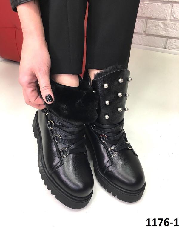 "Зимові черевики з перлами Перли – метал (не білий) Зовнішньо: натуральна шкіра Усередині: набивна вовна Висота: 13см Підошва: 4/3см"