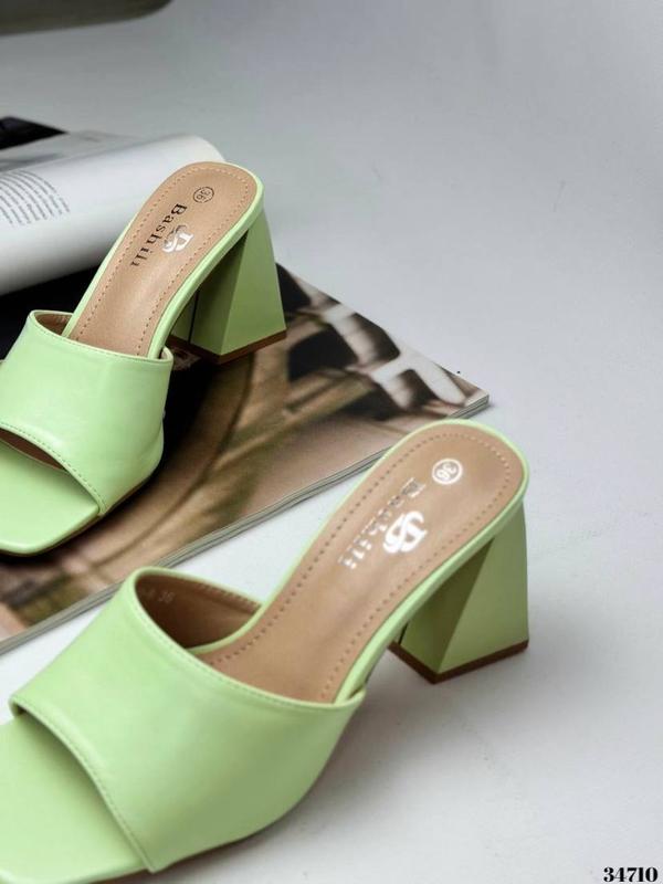 🔝НОВИНКА🔝 Шлепанцы сабо на широком каблуке Цвет:салатовый Материал: эко кожа Сезонность: лето Код товару: 34710 ▪️Высота каблука: 9см Размерная сетка: 36-23,5; 37-24; 38-24,5; 39-25; 40-26 см.