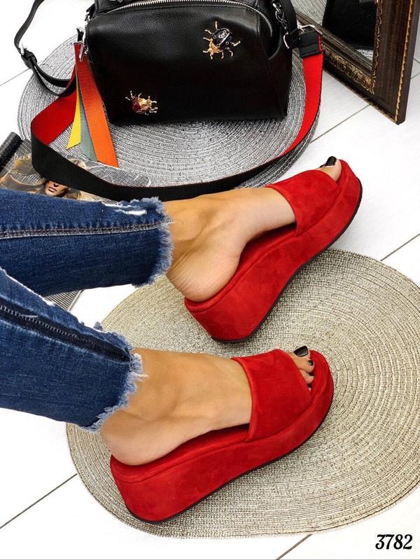Размер 36 ✔️ Код 3782 Сабо на танкетке натуральные красный замш. Идут размер в размер Материал: натуральный замш Подошва 3/6 см Размер по сетке: 36р - 23 см