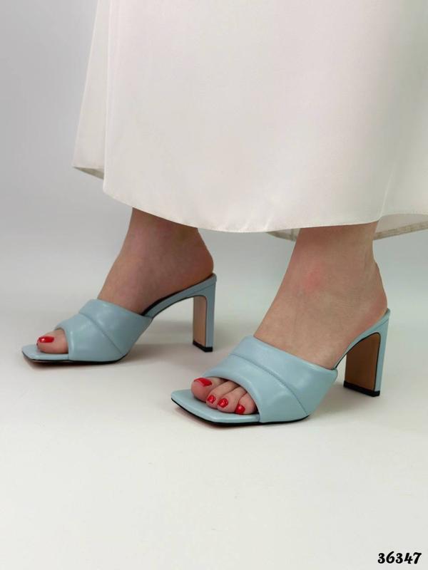 Материал: эко кожа Сезонность: лето ▪️Высота каблука: 8см Размер по сетке: 35-23; 36-23,5; 37-24; 38-24,5; 39-25,5см.