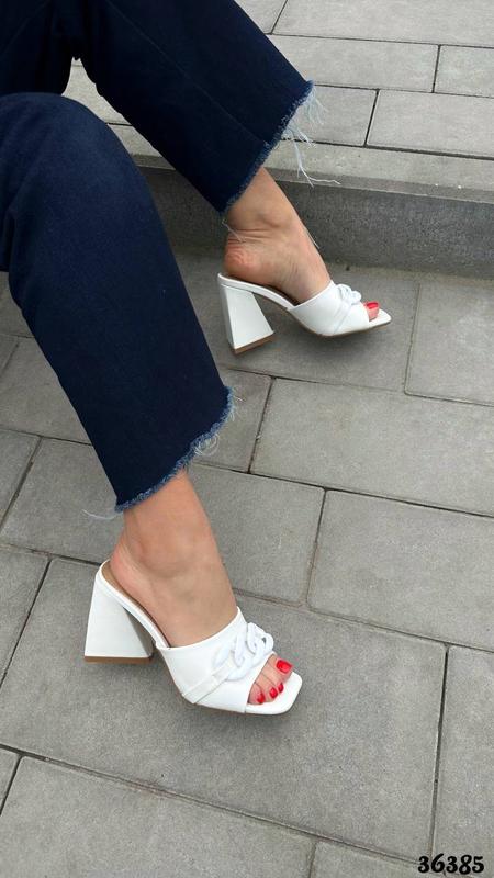 Шлепанцы-сабо с цепочкой- лаконичный шик на каждый день Цвет: белый Материал: эко кожа Сезонность: лето Код товару: 36385 ▪️Высота каблука: 9см Размер по сетке: 36-23,5; 37-24; 38-24,5; 39-25,5; 40-26см.