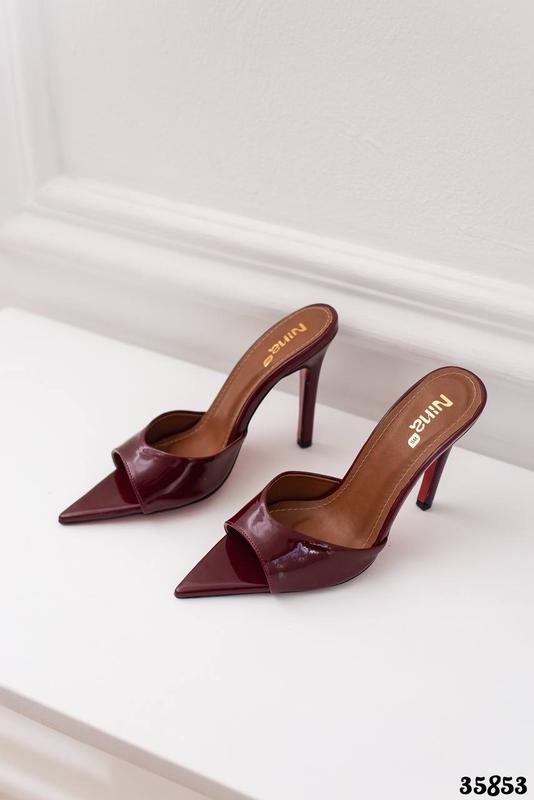 Шлепанцы сабо на высоком, устойчивом каблуке. Выполнены из качественных, искусственных материалов, обеспечивают комфорт и удобство при носке Цвет: бургунди Материал: эко лак Сезонность: лето Код товару: 35853 ▪️Высота каблука: 10,5см ▪️Ширина шлейки: 2см Размер по сетке: 36-23,5; 37-24; 38-24,5; 39-25,5; 40-26см.
