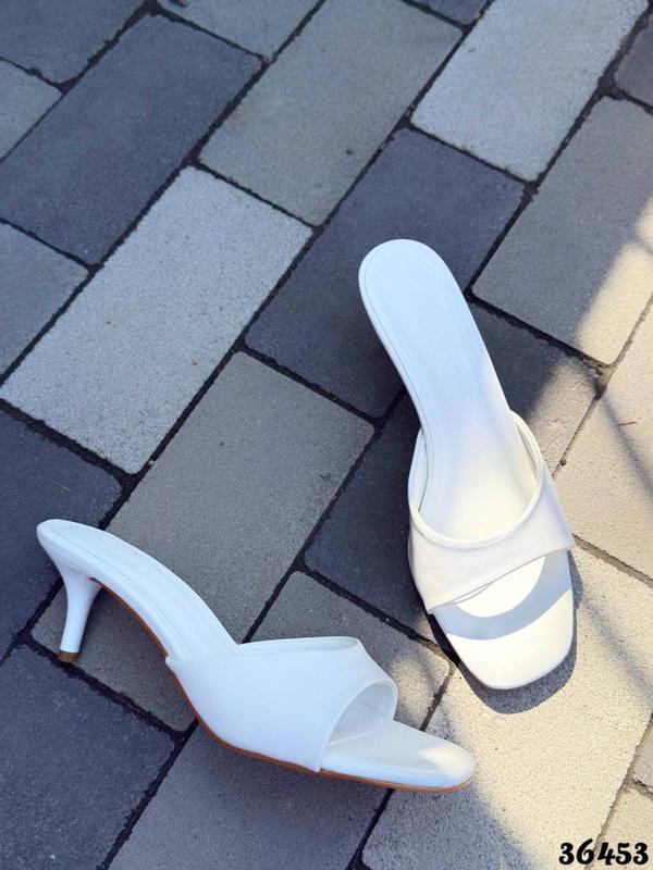 Трендовые шлепанцы-сабо на устойчивом каблуке Цвет: белый Материал: эко кожа Сезонность: лето Код товару: 36453 ▪️Высота каблука: 6см Размер по сетке: 36-23,5; 37-24; 38-24,5; 39-25,5; 40-26см.
