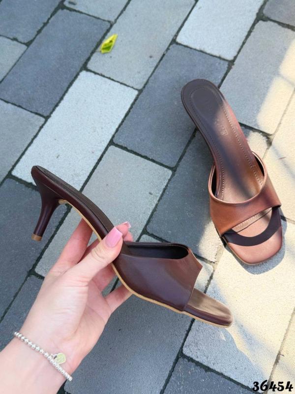 Трендовые шлепанцы-сабо на устойчивом каблуке Цвет: коричневый Материал: эко кожа Сезонность: лето Код товару: 36454 ▪️Высота каблука: 6см Размер по сетке: 36-23,5; 37-24; 38-24,5; 39-25,5; 40-26см.