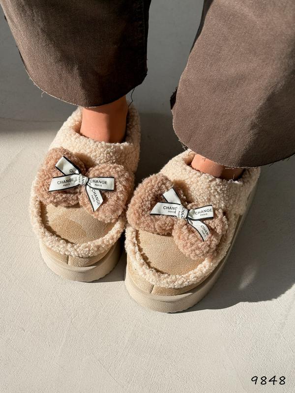 Бежевые утепленные сабо - тапочки на высокой подошве