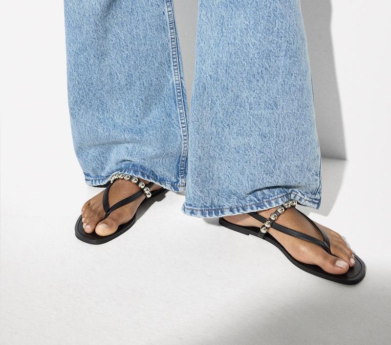 Ціна 1420 220354 PRF. 📌екологічна шкіра 📌 📌Умови замовлення мінімальна оплата 500грн📌 📌olena__beley📌 Босоніжки з тонкими монохромними ремінцями з центральною металевою деталлю з бісеру. Регульована пряжка на щиколотці.