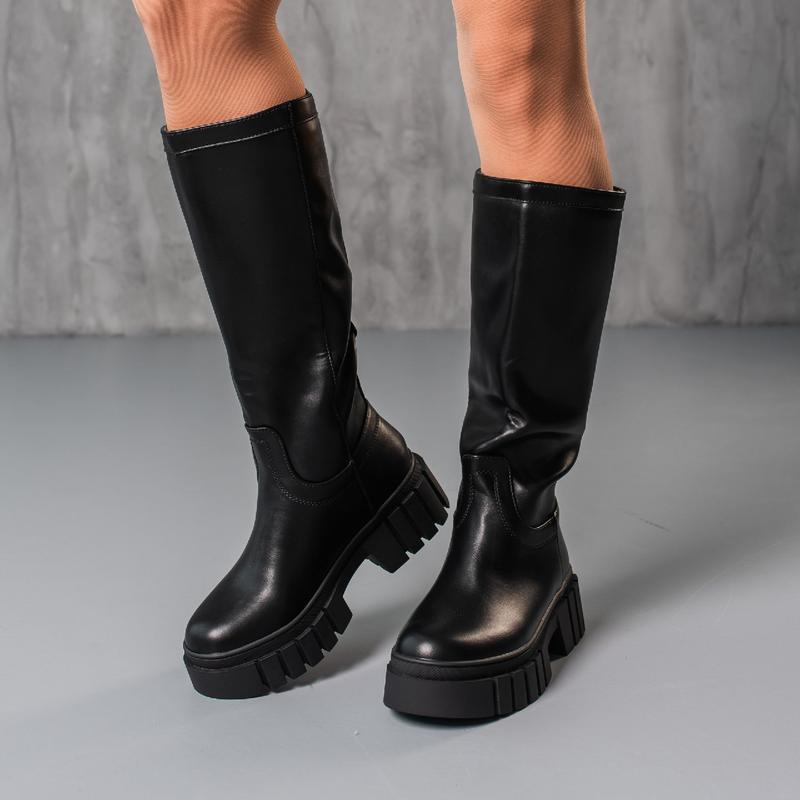 Код: 3867 Матеріал: штучна шкіра Усередині: фліс Висота: 40 см Каблук: 5,5 см Платформа: 3 см Колір: чорний Сезон: весна/осінь Повномірні: 36 - 23,5 см 37 - 24 см 38 - 24,5 см 39 - 25 см 40 - 25,5 см 41 - 26 см
