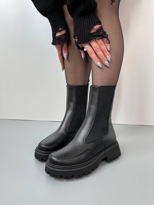 Популярные зимние кожаные сапоги челси с мехом натуральная кожа зима ботинки тренд хит сез...