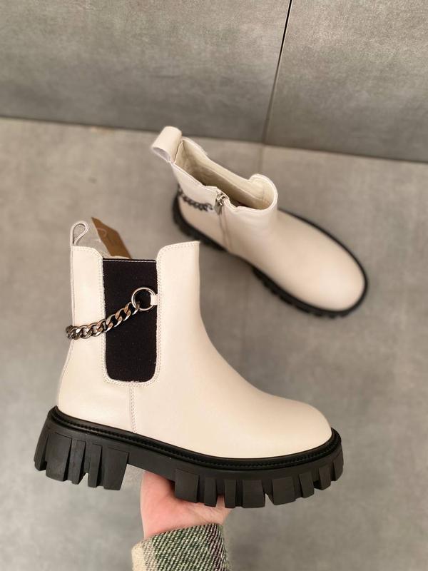 Женские кожаные бежевые сапоги на флисе натуральная кожа демисезон осень весна челси светл...