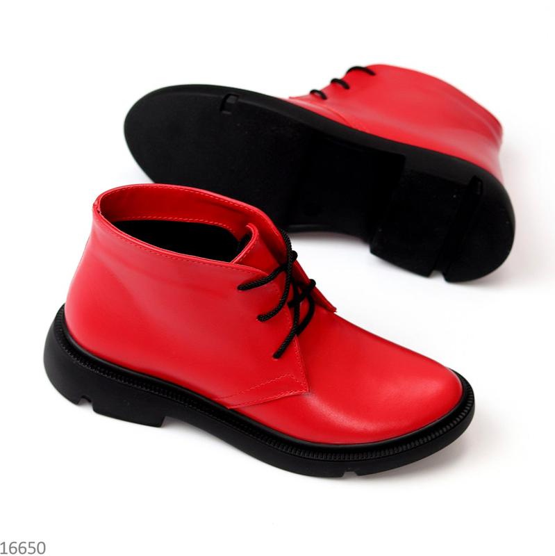 Натуральные кожаные демисезонные красные ботинки на ворсистом флисе