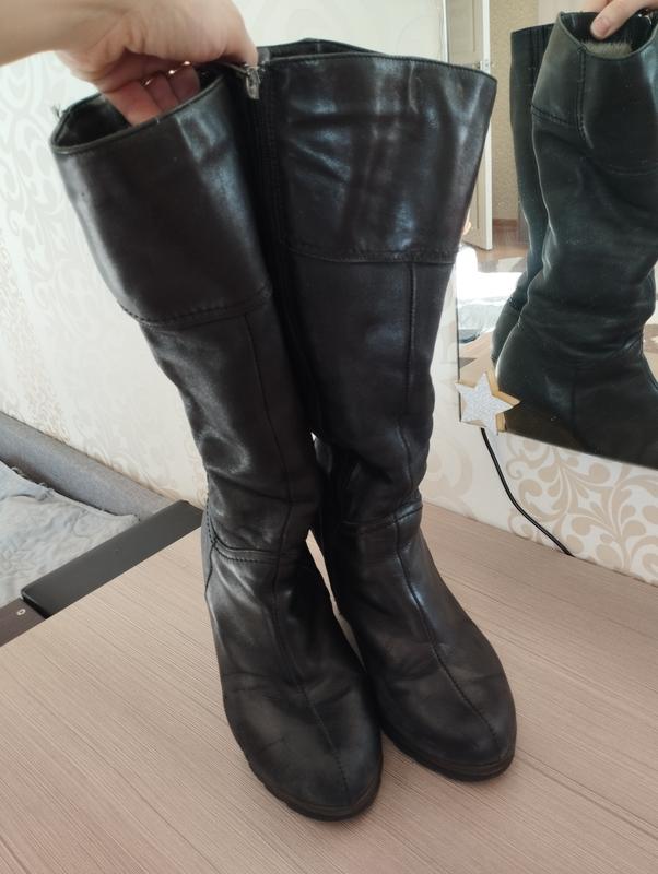 Кожаные Днепропетровск. Очень теплые. Длина стельки 24см (стельки следует сменить, уже стоптани). Высота подъема 9.5см(сзади), 1.5см (спереди). Правый чуточку потресканный(на фото вказала).