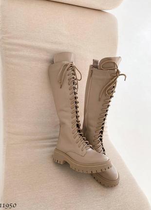 Код 11950 Чоботи демі, колір: БЕЖ матеріал: НАТУР.ШКІРА всередині: байка по всій довжині збоку робоча блискавка по всій довжині висота від п'яти 36 см підошва: спереду 2,5 см позаду 4,5 см вироб. - Україна Обхват гомілки: 37 = до 34 см 38 = до 35 см 39 = до 36 см 40 = до 37 см 41= до 38 см 37= 23,5 см 38= 24,5 см 39= 25 см 40= 25,5 см 41= 26 см Вага 37р= 1 кг 120 г
