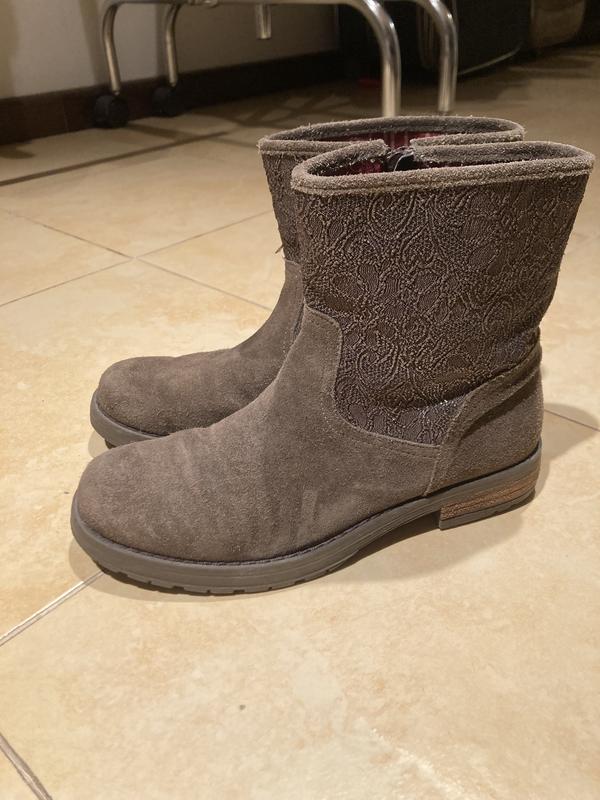 35 размер, замшевые а внутри натуральная кожа, подошва не стерта, носки не сбиты, состояние очень хорошее, из нюансов нет застежек на кнопках но это никак не влияет на функционал.