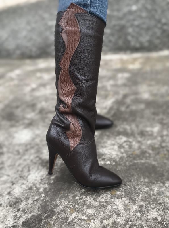 Демисезонные высокие сапоги сапожки натуральная кожа мех кожаные на каблуке ретро ковбойск...