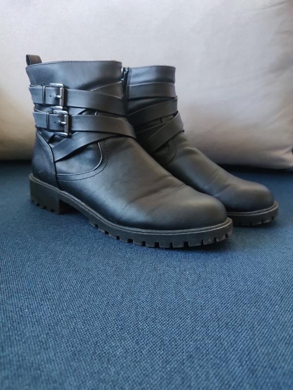 Ботинки на тракторной подошве, ботинки были приобретены в магазине New Look, есть несколько недостатков, на левом ботинке на носке есть небольшая царапина и в левом ботинке отошла подкладка, дополнительные фото дефектов добавлены