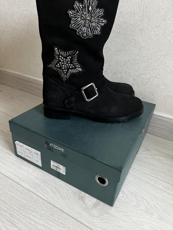 Сапоги новые, натуральная замша. Куплены в Миратоне. Очень красиво смотрятся на ноге, вышитые стиклярусом. 39 размер
