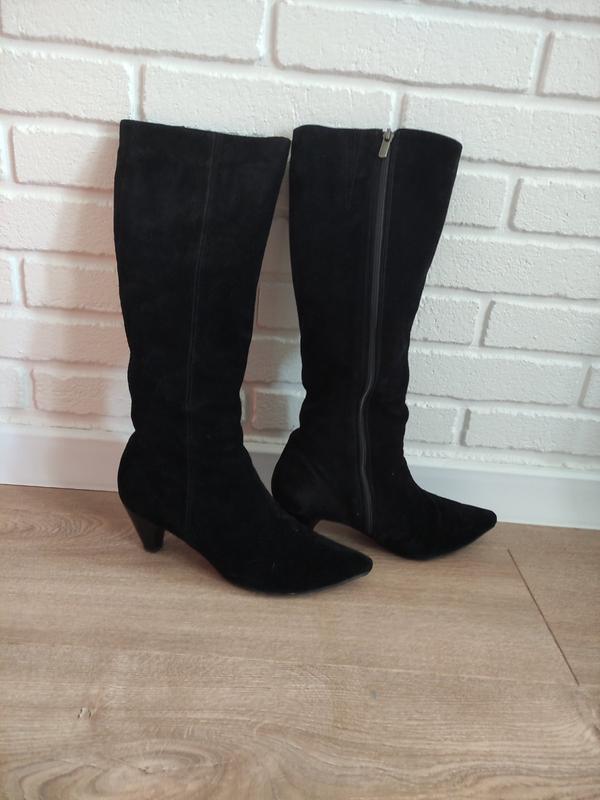 Замшевые зимние сапоги в очень хорошем состоянии. Внутри мех натуральный. Размер 39 – 25 см стелька Мягкие, удобные, стойкий каблук (6 см) Отправка укрпочтой, новой почтой