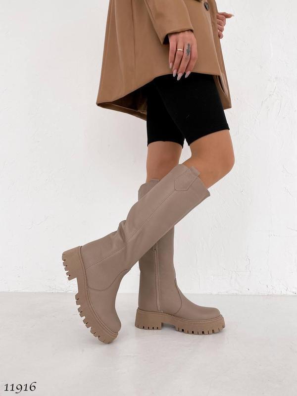 Женские деми сапоги из натуральной кожи флотар темно-бежевого цвета. Подкладка байка по всей длине. Высота от пятки 38 см. Подошва ТЭП высотой 3 см/ сзади 4,5 см. Производитель Украина. Обхват голени 36 до 36 см, 37 до 37 см, 38 до 37,5 см, 39 до 38,5 см, 40 до 39,5 см. Размеры: 36= 23,5 см 37= 24 см 38= 24,5 см 39= 25.5 см 40= 26 см 41=26,5 см