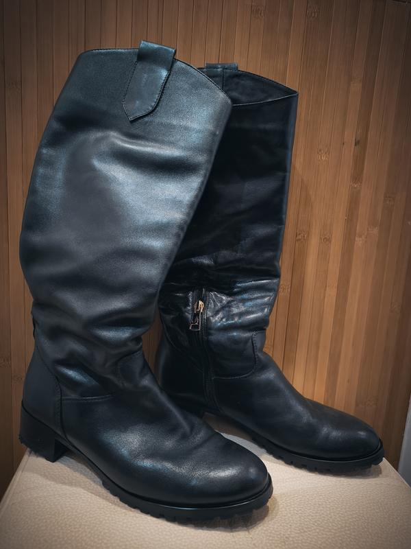 продаю свої улюблені чоботи, чоботи Еврозима 38 р, але пишеться 39, заміри устілки 25 см, натуральна шкіра, нова термоустілка натуральне хутро, нові резинові набойки. дефектів немає, висота 43 см, полуобхват ноги 18,5 см не промокають, хороша якість взуття фірма Grand Style сапоги очень удобные, просто выросла нога
