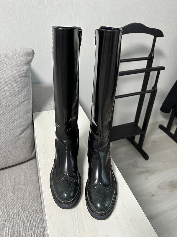 Чоботи жіночі Бренд Laura Bellariva Розмір 36, 5 Стелька 24 Стан чудовий Висота 41 Пів обьем зверху 18 Шкіра лакова Всередині також Держать форму