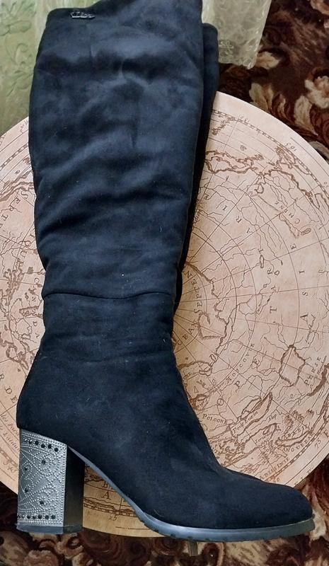 сапоги демисезонные на каблуке 7см. с камушками, экозамш, надевались раз четыре