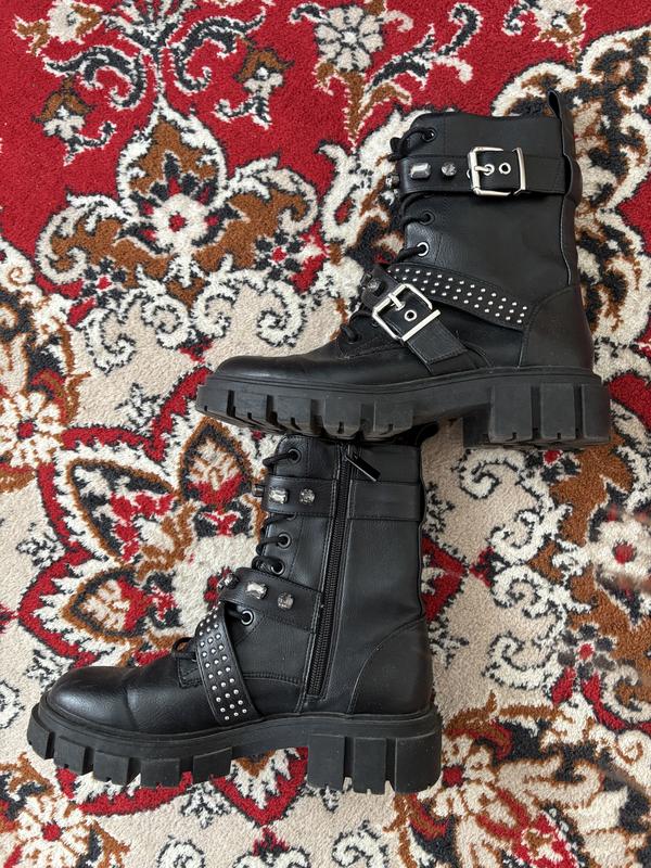 Ботинки черные состояния очень хороши Стелька 24 Я носила на 23,5 Стелька не снимается Бренд Stradivarius Очень стильные.