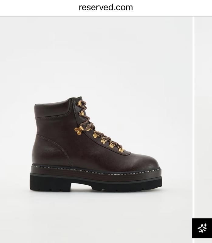 Ботинки Reserved 39 розмір із еко шкіри. Утеплені штучним хутром. Коричневого кольору із високою підошвою, на шнуровці із застібками-люверсами. Довжина устілки 25 см. Неймовірно мʼякі і зручні, а також дуже актуальні. Нові, із біркою