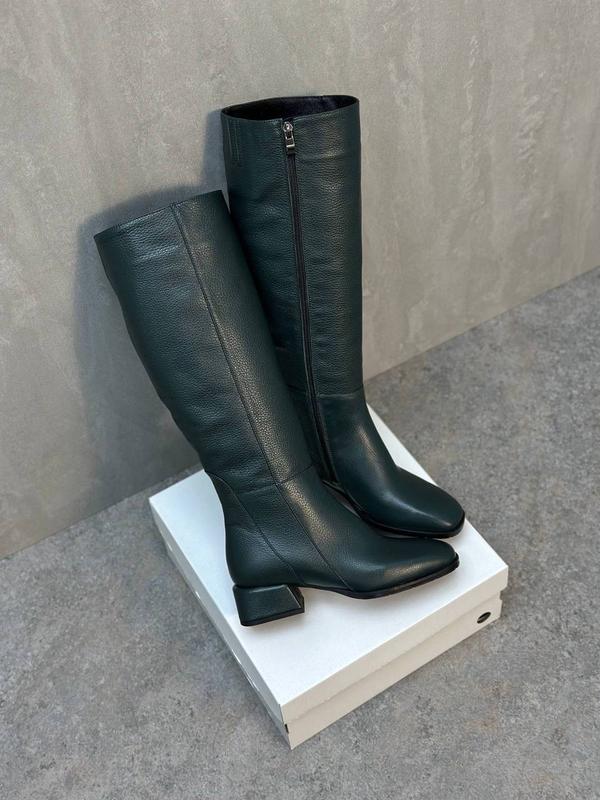 Шкіра бутилка смарагд зеннла чоботи квадратні оригінальні